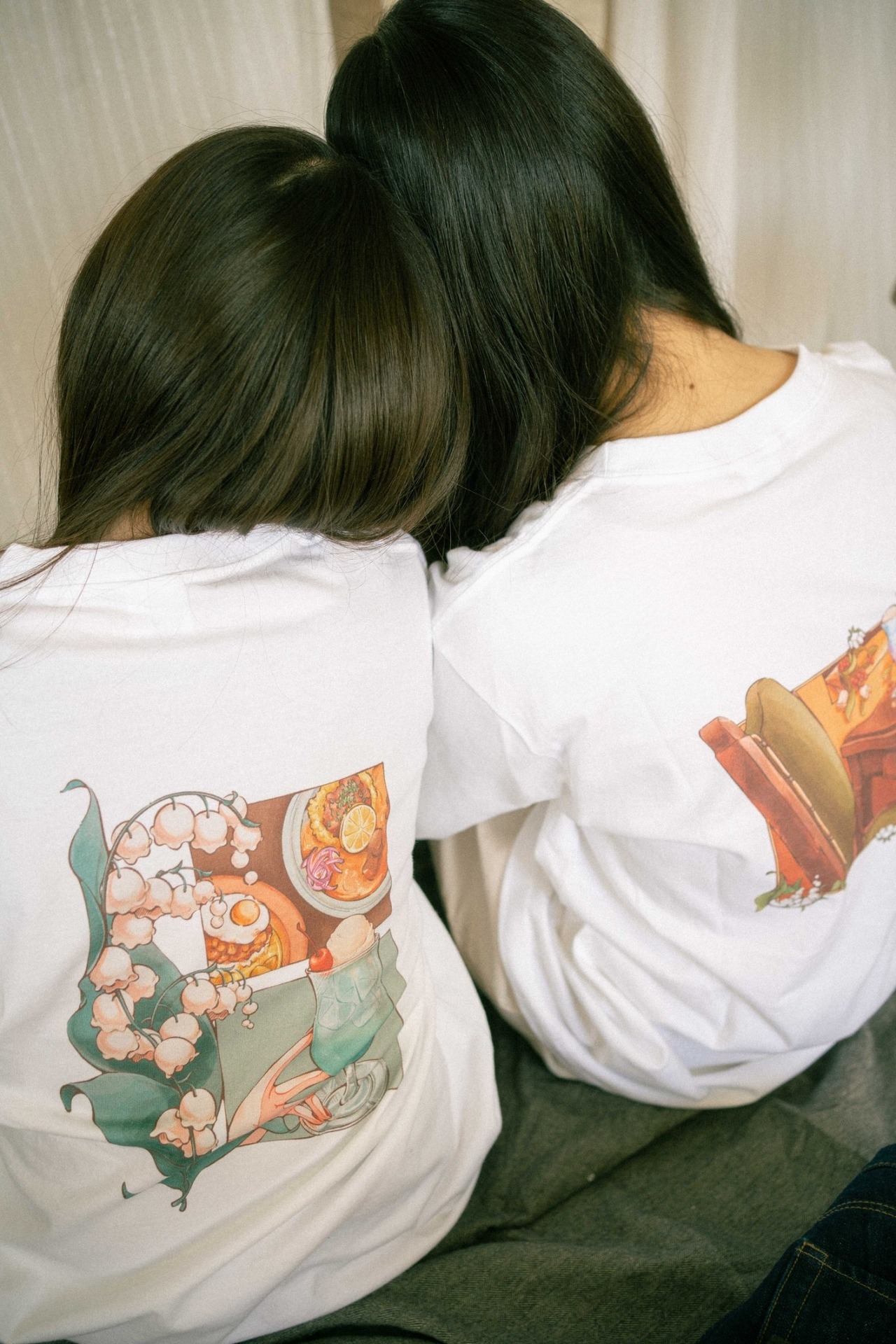 旅する喫茶で過ごすゆったりした時間をイメージしたイラストのロンTです。